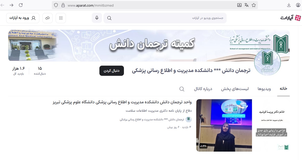 آدرس آپارت ترجمان دانش دانشکده مدیریت و اطلاع رسانی پزشکی