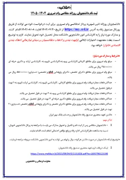 دانشجویان روزانه (غیر شهریه پرداز ) متقاضی وام ضروری برای ثبت درخواست خود می توانند از طریق پرتال صندوق رفاه به آدرس https://my.srd.ir از تاریخ 1404/07/30 لغایت 1404/08/08 اقدام کنند