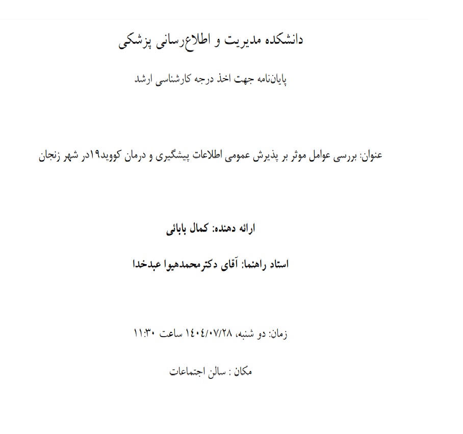 جلسه دفاع از پایاننامه کارشناسی ارشد بررسی عوامل ...