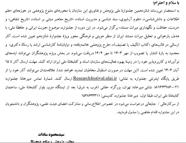 شانزدهمین جشنواره پژوهش و فناوری سازمان اسناد و کتابخانه ملی ایران