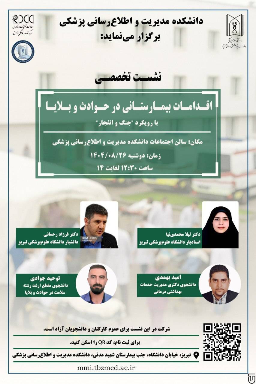 نشست تخصصی اقدامات بیمارستانی در حوادث و بلایا با رویکرد " جنگ و انفجار "