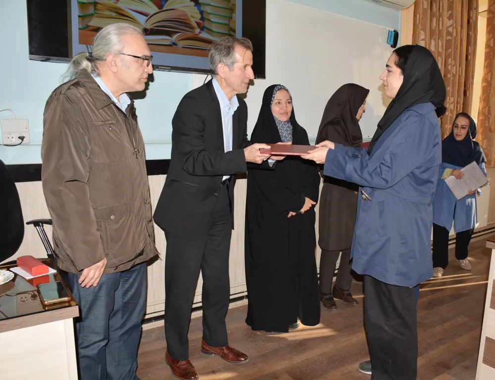 در پایان این نشست، از دو نفر از کارکنان رشته کتابداری، خانمها لیلی فیروزقلب و مبینا شریفیآذر، با اهدای لوح تقدیر تجلیل بهعمل آمد. همچنین به دانشجویان،ثمین بنایی بهعنوان «کتابخوان برتر» و امین اسدی اصل بهعنوان «اهداءکننده برتر» لوح تقدیر اهدا شد.
