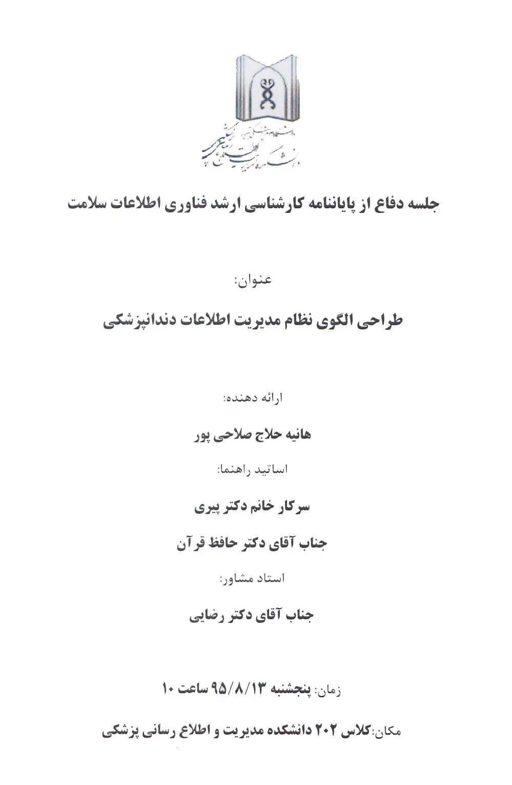 پایاننامه کارشناسی ارشد فناوری اطلاعات سلامت دانشجو ....
