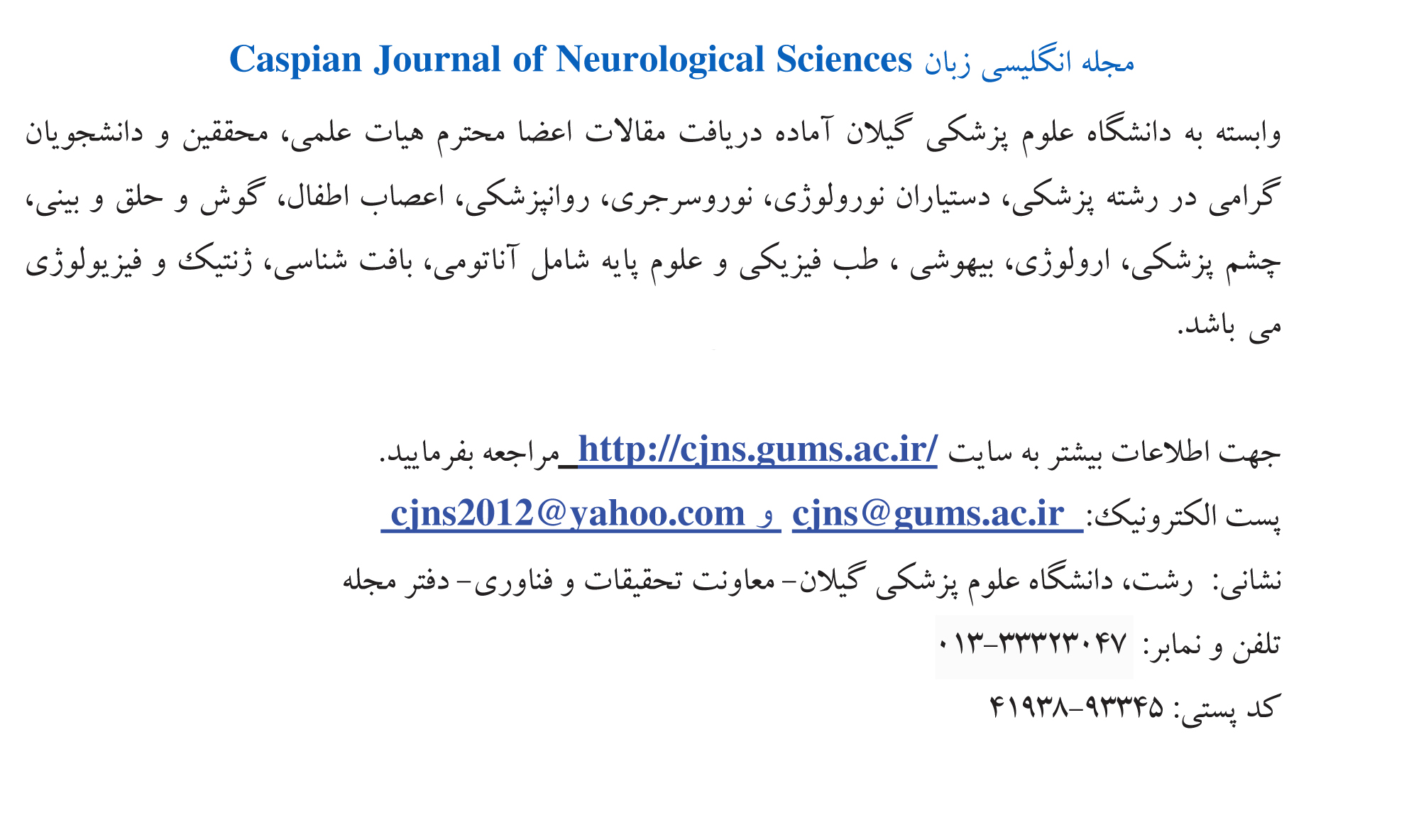 مجله انگلیسی زبان Caspian Journal of Neurologcial Sciences وابسته به دانشگاه علوم پزشکی .....