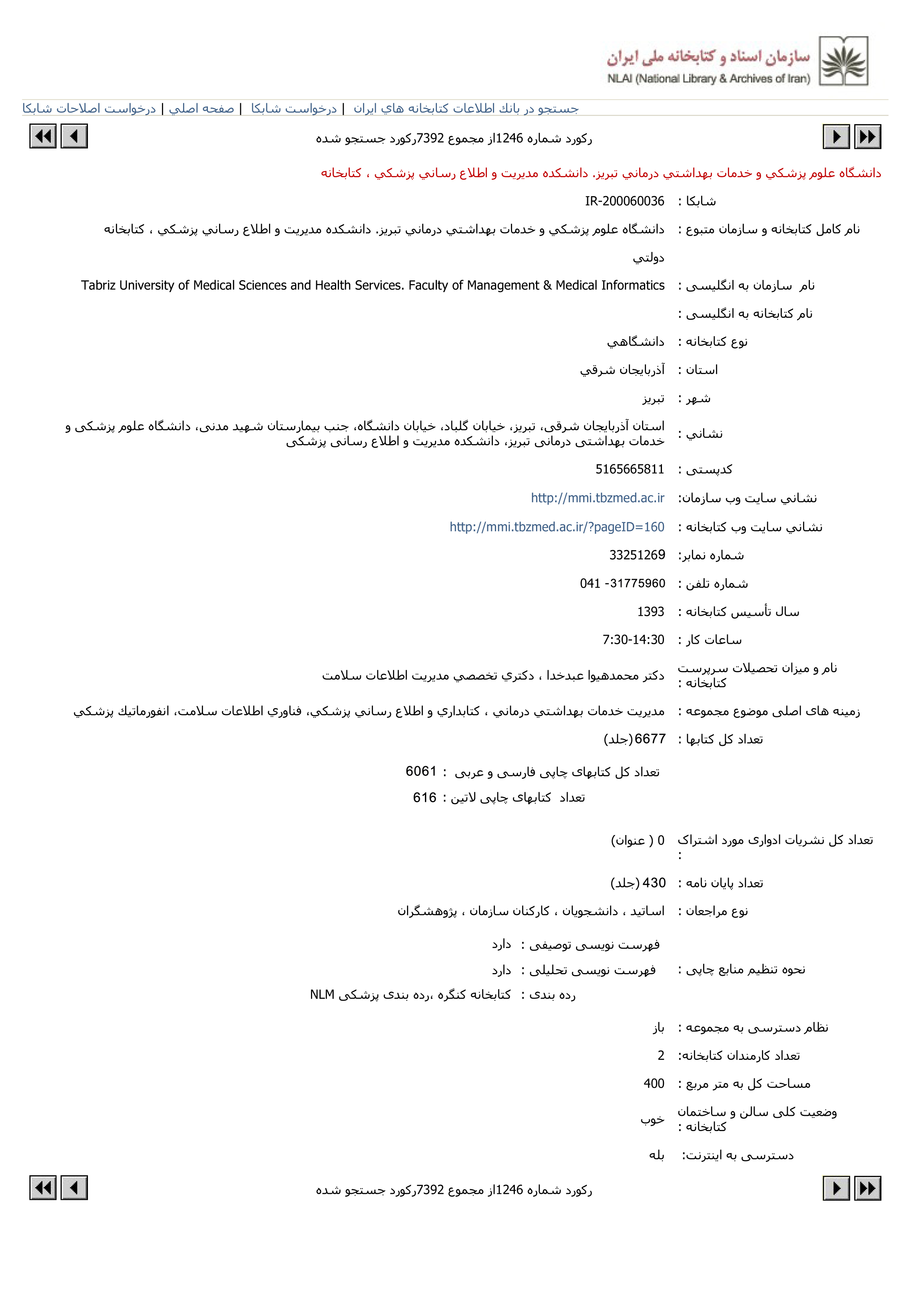 به روز رسانی اطلاعات بانك اطلاعات كتابخانه های ایران.