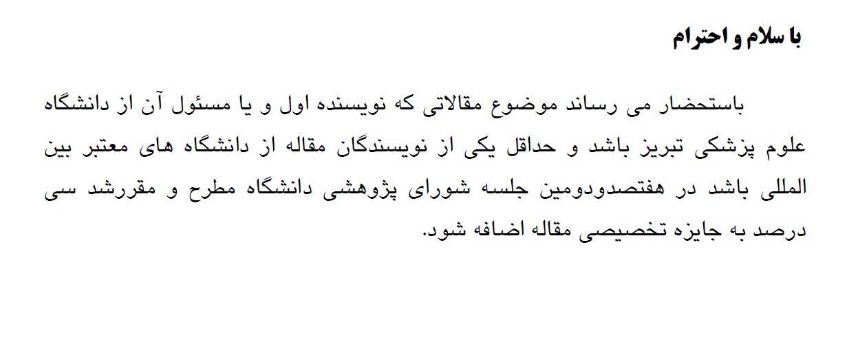 مقالاتی که نویسنده اول و یا مسئول آن از دانشگاه علوم پزشکی باشد