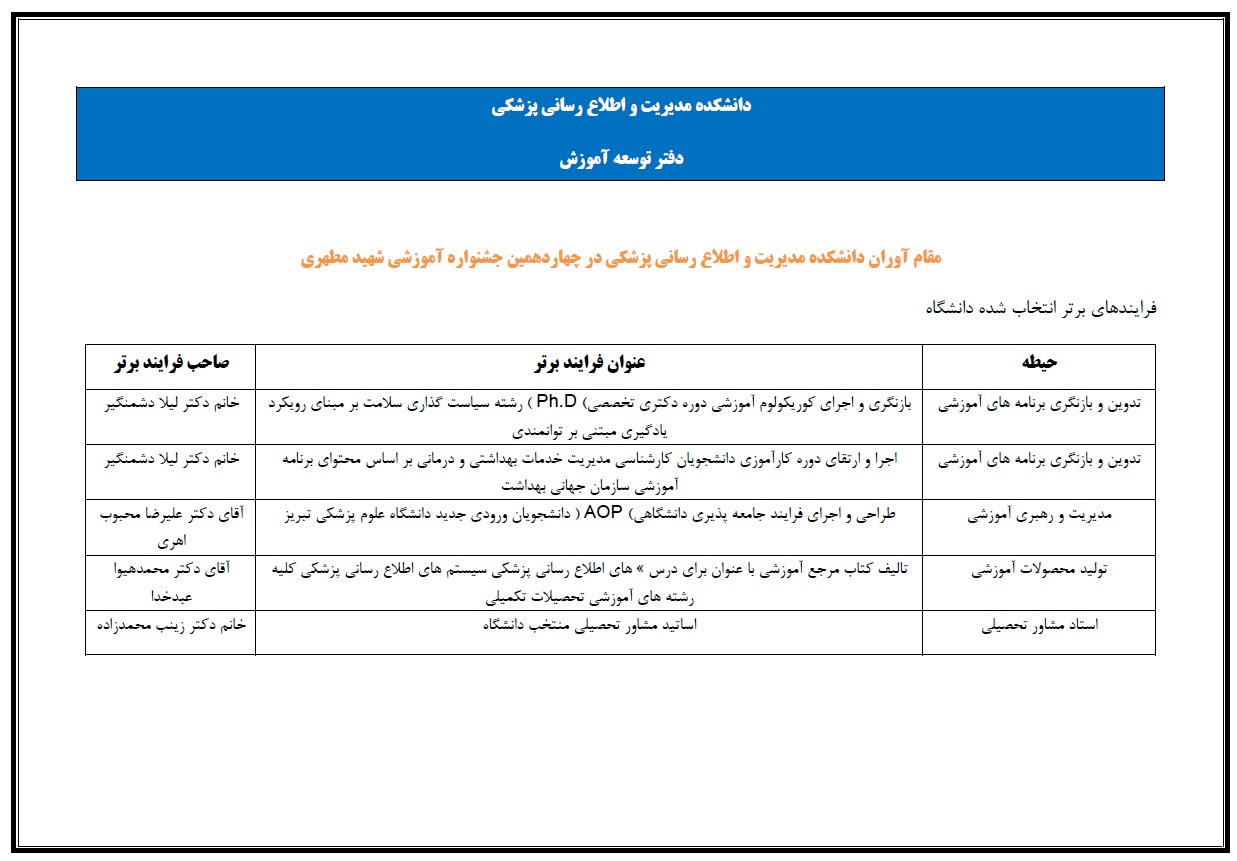 فرآیندهای آموزشی برتر دانشکده